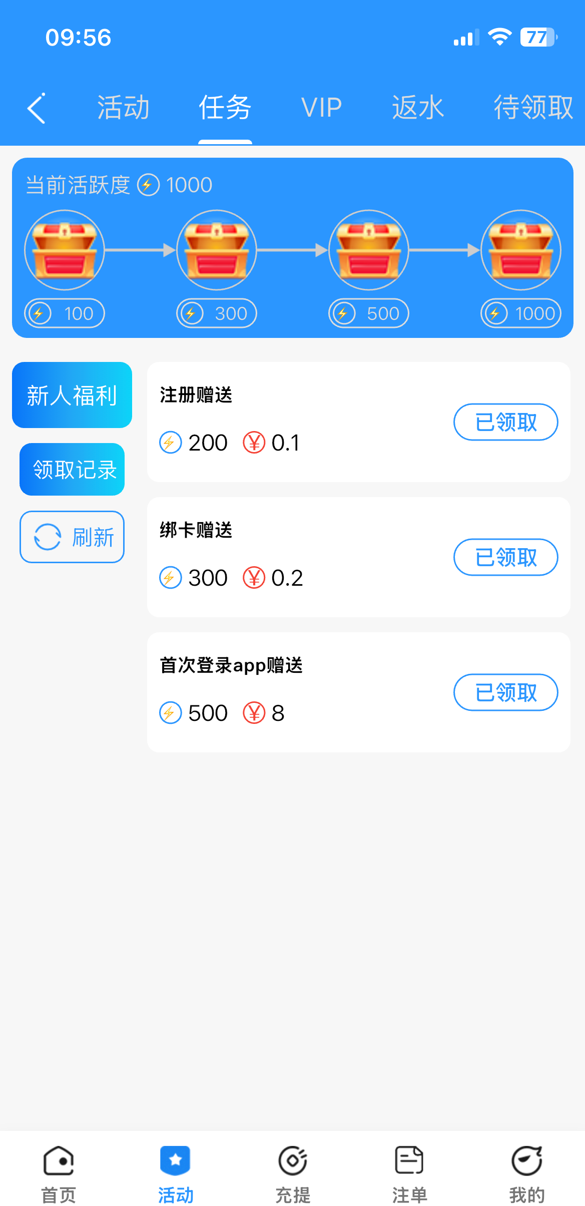 宝马大放送 充300 送180 .....