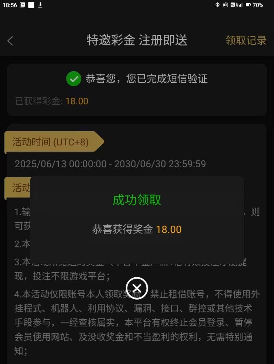 短信特邀彩金